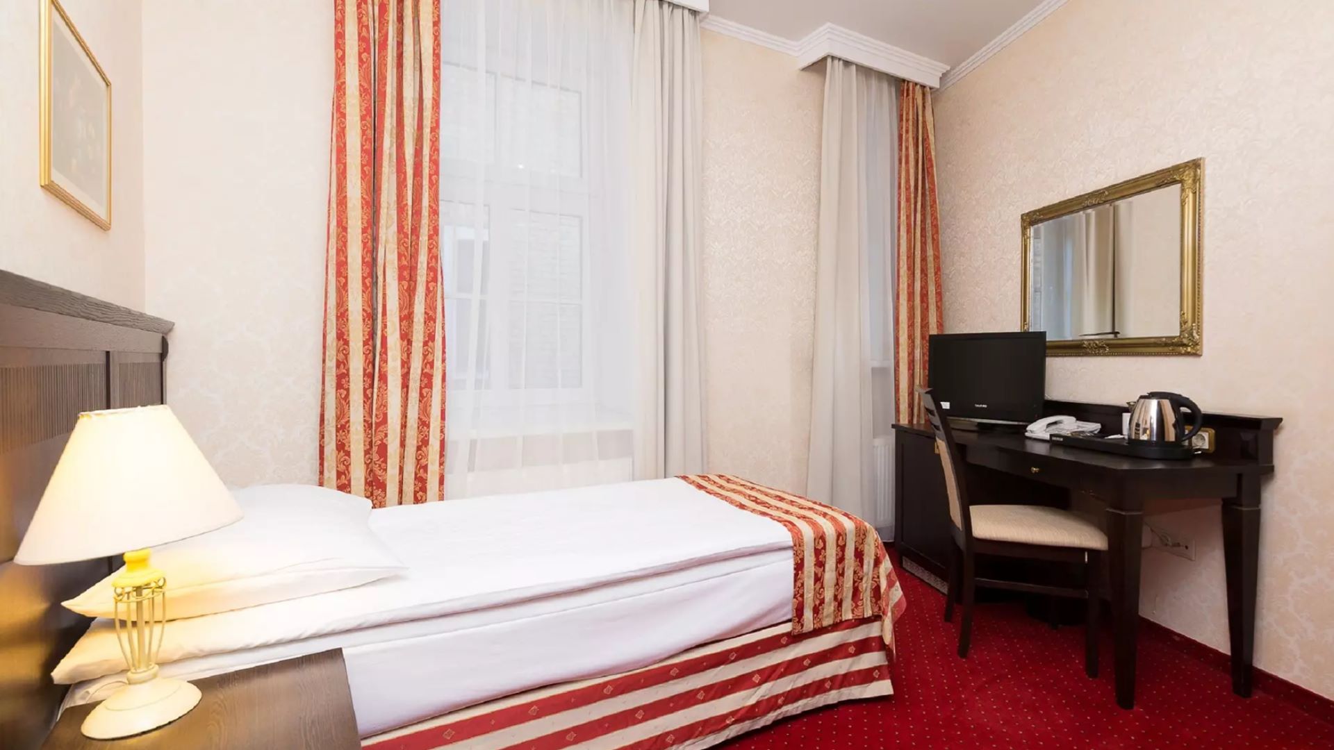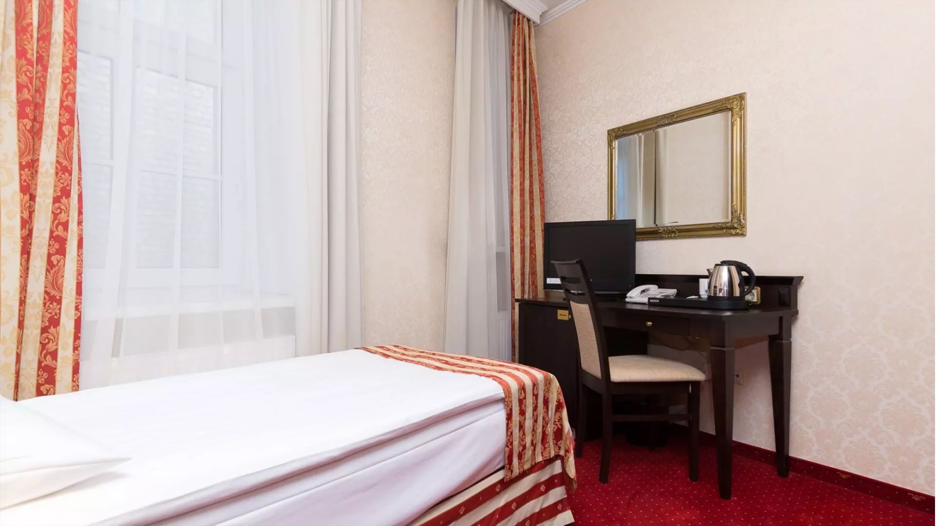 Single rooms are classically furnished and elegantly designed. All feature a flat-screen TV, a private bathroom with free toiletries, ironing facilities, as well as a tea and coffee making set.
